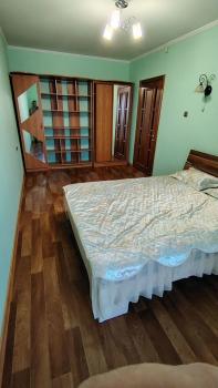 Квартира просторная, светлая, теплая, чистая. Не угловая, окна выходят на две стороны дома, во двор. Отличная планировка: все комнаты раздельные, кухня 8 м2, просторная входная зона, гардеробная, встроенные шкафы, антресоли, застекленная лоджия, раздельный санузел. Квартира в хорошем состоянии, проведен косметический ремонт. Есть вся необходимая мебель для удобного проживания: спальные места, шкафы для одежды и белья, кресла, компьютерный стол, тумба под телевизор, журнальный столик, кухонный гарнитур, из техники - электроплита, холодильник, стиральная машина. При необходимости можно обеспечить дополнительное спальное место.