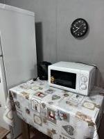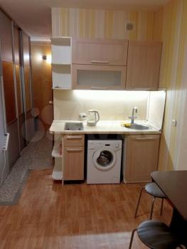 санузел - совмещённый, мебель - кухня, хранение одежды, спальные места, холодильник, плита, микроволновка, стиральная машина, телевизор.