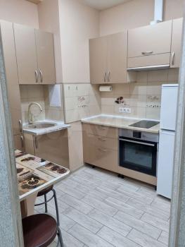 В квартире выполнен косметический ремонт. Просторная кухня оснащена необходимой бытовой техникой, включая холодильник и микроволновую печь, есть посуда и телевизор. В комнате и прихожей есть шкаф