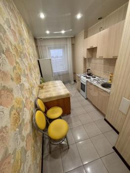 Сдаётся уютная квартира на первом этаже панельного дома с современным евро ремонтом. В квартире есть всё необходимое для комфортного проживания: холодильник, стиральная машина и телевизор. Просторная комната оборудована шкафами и диваном, что позволяет разместить два спальных места.