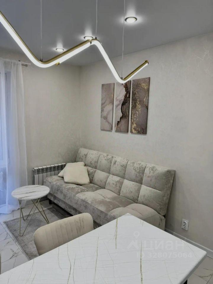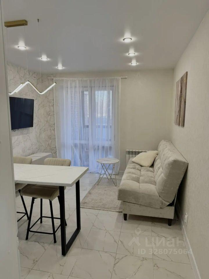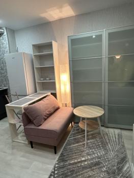 В квартире есть все необходимое для комфортного проживания. Просторная комната обставлена мебелью, на кухне установлен холодильник, а в ванной комнате — стиральная машина и ванна. Планировка студии позволяет удобно организовать пространство для отдыха и работы.