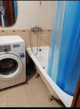 Санузел совмещенный, оснащен ванной и стиральной машиной.