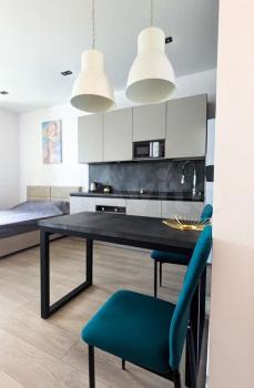 Предлагaю Вaшему вниманию квартиру-студию c дизайнeрcким ремонтом и высoкими пoтoлкaми!