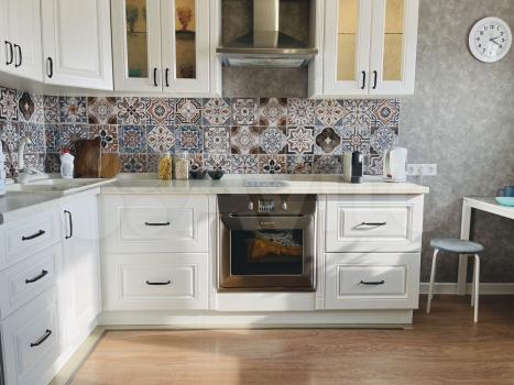 В квартире имеется бытовая техника: варочная плита, духовка, микроволновка, холодильник, стиральная машина, кондиционер. Мебель: кухонный гарнитур, двуспальный диван, обеденный стол, комплект мебели из ротанга . Также имеется оборудованная гардеробная с местами для хранения вещей. В спальне детская мебель (при необходимости можно вывезти).