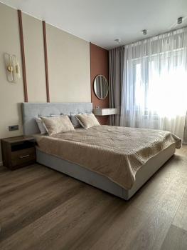 3-х комнатная квартира площадь 97 кв.м., новая, качественный евроремонт из дорогостоящих материалов, студия кухня-гостиная, две отдельные комнаты, просторная лоджия (застеклена), полы с подогревом, сан. узел - кафель, раздельный ванна - туалет, отдельная душевая комната с душевой кабиной, мебель - кухонный гарнитур встроенный, мягкие уголки, наборы корпусной мебели, бытовая техника - телевизор, СВЧ, эл. плита стеклокерамика, холодильник, стиральная машина, кондиционер в каждой комнате; на полу - ламинат. Интернет, ТВ. Рядом - кинотеатр Баргузин, диагностический центр, супермаркеты, остановки всех видов транспорта, парковка возле дома.