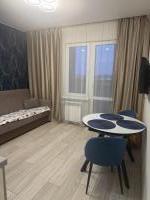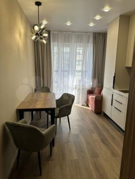 Сдается уютная студия с евроремонтом в новом доме. Квартира площадью 30 кв. м расположена на 2-м этаже 16-этажного дома. Окна выходят во двор, что обеспечивает тишину и спокойствие.
