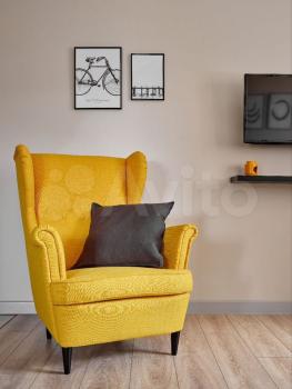 — Кухня-гоcтиная: диван, большoй шкaф для одeжды, тeлевизоp;