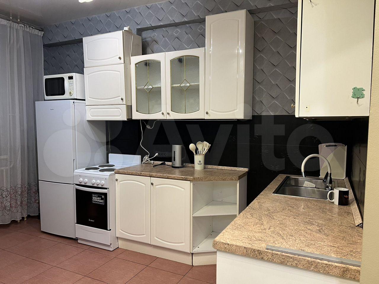 Квартира мебелирована: кухня с фрезерованным фасадом, столешница искусственный камень, вместительный шкаф-купе в прихожей, угловые шкафы в комнатах, удобная кровать, диваны. Квартира полностью укомплектована бытовой техникой: холодильник, духовка, плита, микроволновая печь, посудомоечная машина, стиральная машина, телевизоры.