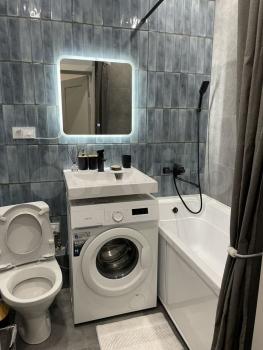 санузел - совмещённый, холодильник, плита, микроволновка, стиральная машина.