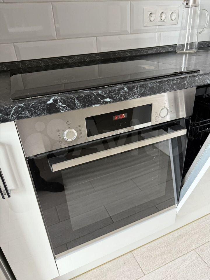 холодильник, плита, микроволновка, стиральная машина, посудомоечная машина, телевизор.