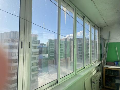 Квартира расположена на четвертом этаже монолитно-кирпичного дома. Из окон открывается приятный вид на город. Лоджия застеклена и оснащена мебелью для отдыха.