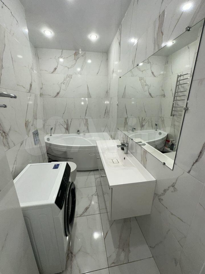 Кухня оборудована холодильником, плитой и микроволновой печью. Санузел раздельный, оснащён стиральной машиной.