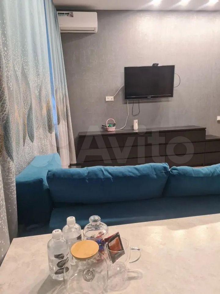 В квартире выполнен дизайнерский ремонт. Комнаты смежные, санузел совмещенный. Из бытовой техники установлен телевизор.