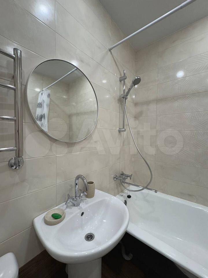 В спальне удобная кровать и вместительный шкаф, что обеспечивает комфортное проживание. Санузел совмещённый, выполнен в современном стиле с качественной сантехникой.