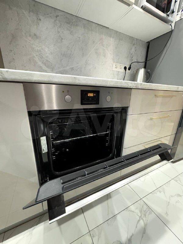 В квартире имеется кухонный гарнитур с печкой и духовкой "Gorenje", стиральная машинка "Бирюса", большой холодильник "Бирюса".