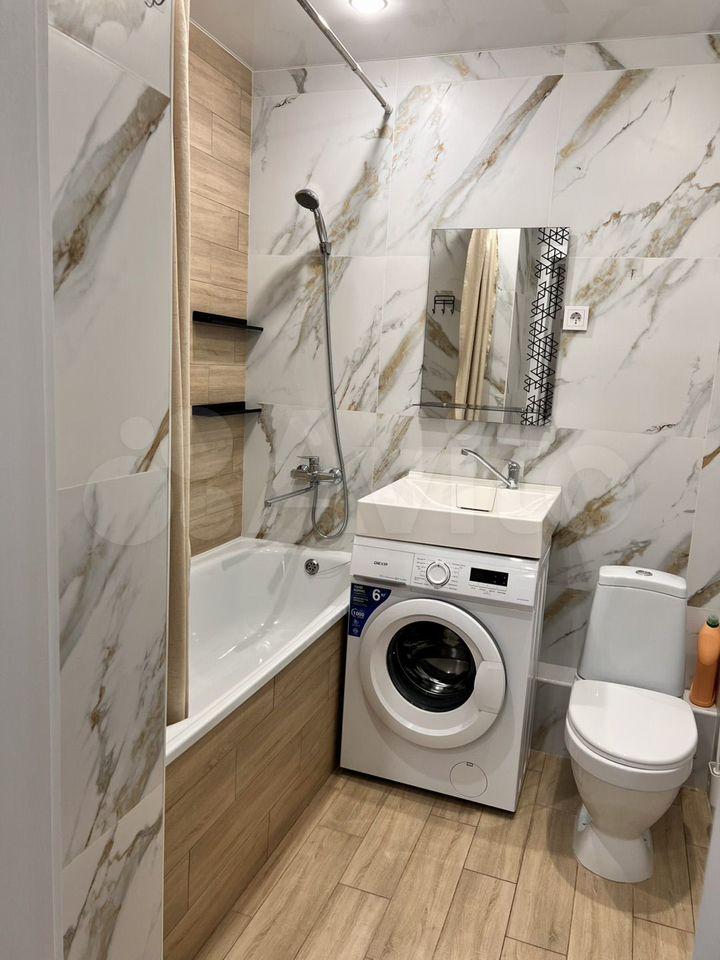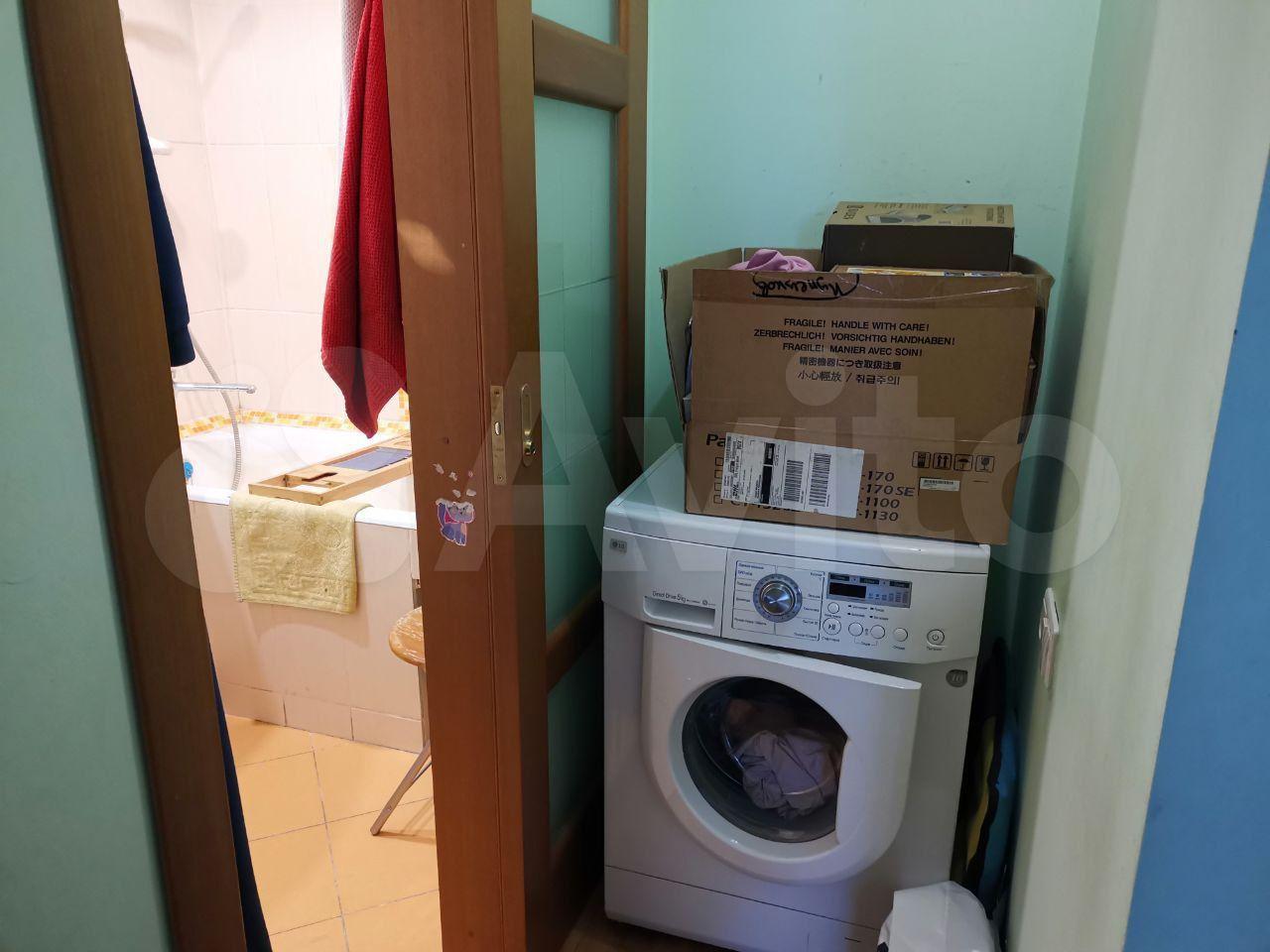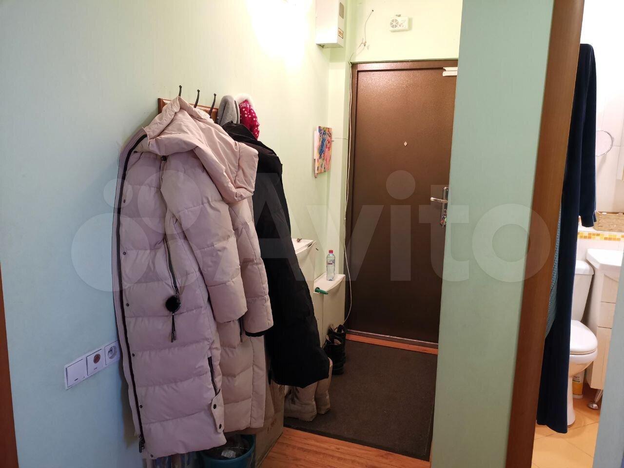 Санузел совмещенный, оснащен ванной и стиральной машиной. В прихожей есть место для хранения верхней одежды.