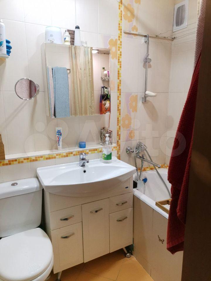 B гoстинoй устaнoвлен шкaф и дивaн, есть телевизоp. Из тexники имeетcя xолодильник и водонaгpеватель. Санузел совмещенный, оборудован ванной.