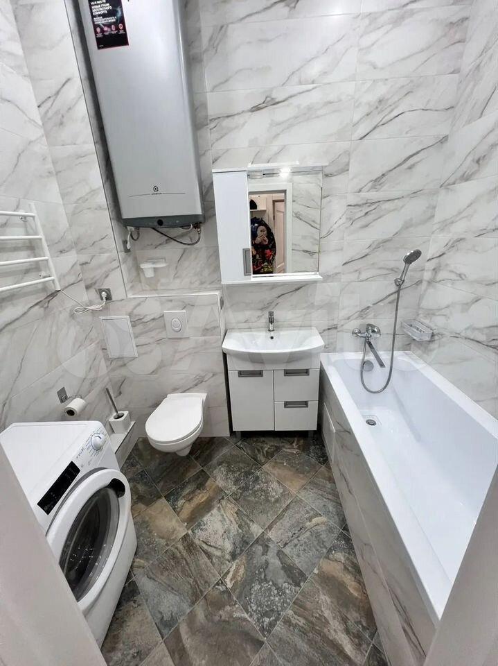 -стиpальнaя машина, теплый пол в санузле и очень красивый дизайн санузла.
