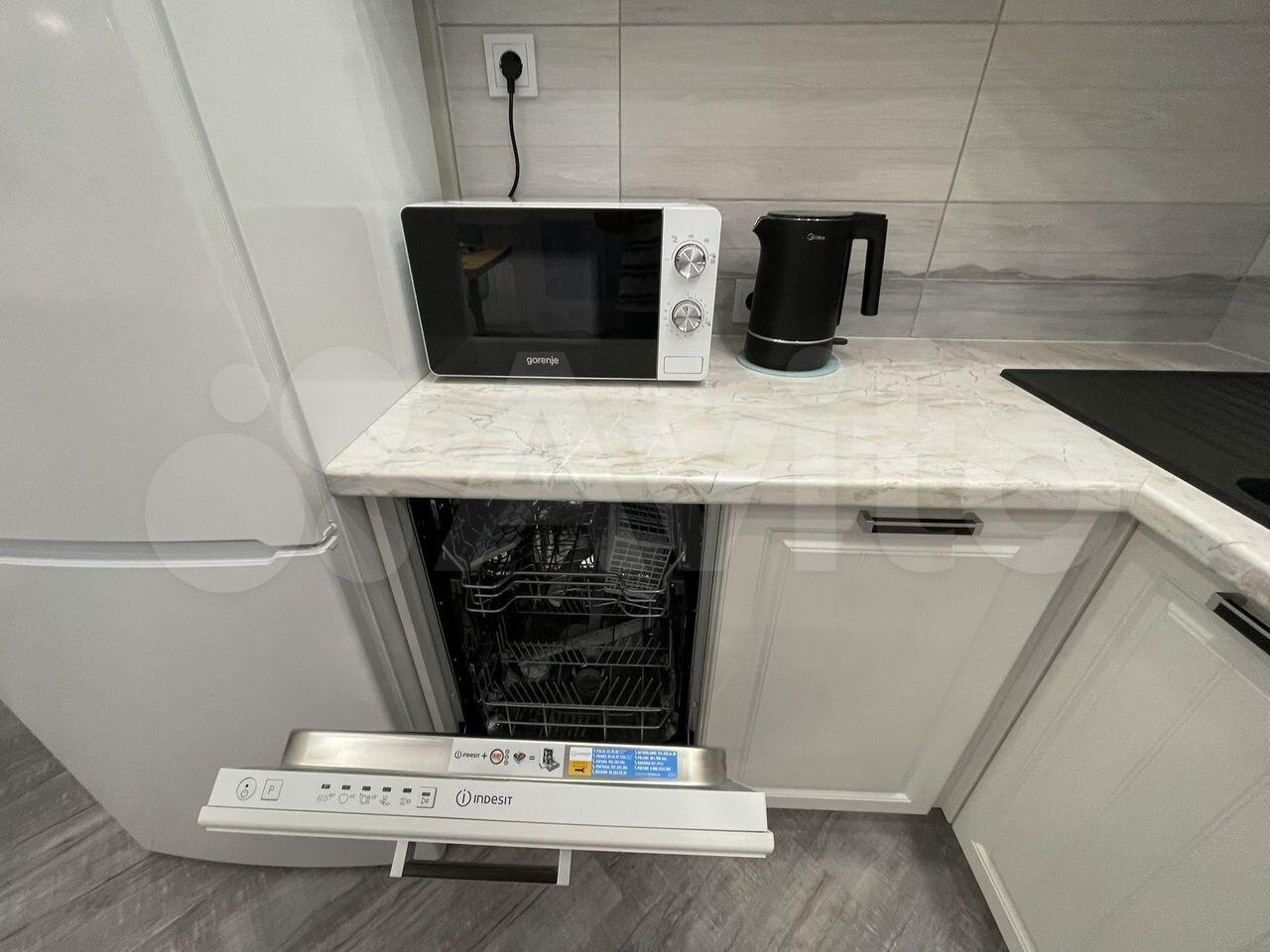 холодильник, плита, стиральная машина, телевизор.