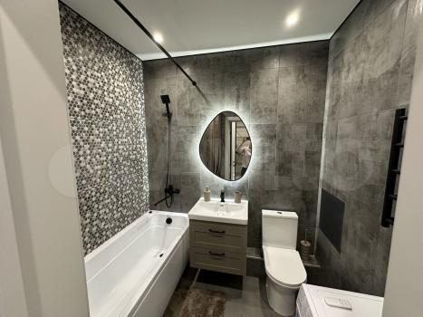 В квартире сделан косметический ремонт. Есть вся необходимая мебель: обстановка на кухне и в комнате позволяет сразу заселиться и жить. Из техники имеется холодильник, что является приятным бонусом для арендаторов. Санузел совмещённый, в ванной комнате установлена ванна — отличное место для отдыха после напряжённого дня.