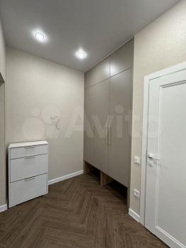 В прихожей также встроенная мебель, продуманная система хранения, установлен видеозвонок.