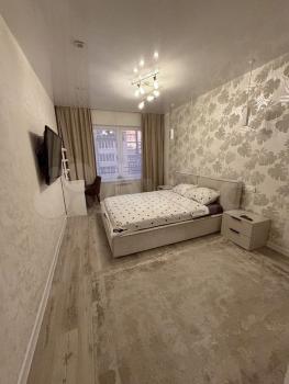 3-х комнатная квартира площадь 97 кв.м., новая, качественный евроремонт из дорогостоящих материалов, студия кухня-гостиная, две отдельные комнаты, просторная лоджия (застеклена), полы с подогревом, сан. узел - кафель, раздельный ванна - туалет, отдельная душевая комната с душевой кабиной, мебель - кухонный гарнитур встроенный, мягкие уголки, наборы корпусной мебели, бытовая техника - телевизор, СВЧ, эл. плита стеклокерамика, холодильник, стиральная машина, кондиционер в каждой комнате; на полу - ламинат. Интернет, ТВ. Рядом - кинотеатр Баргузин, диагностический центр, супермаркеты, остановки всех видов транспорта, парковка возле дома.