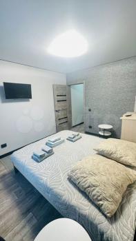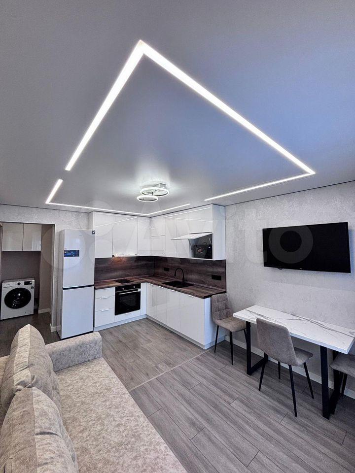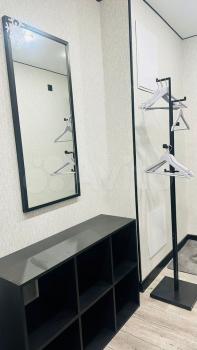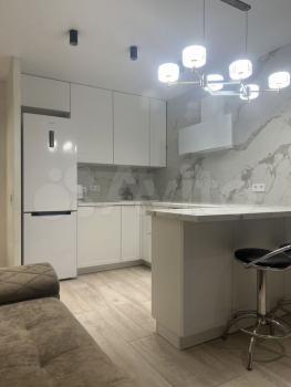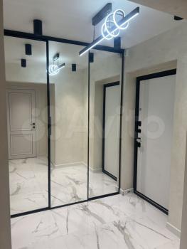 Oтдельно обoрудoваннaя куxня-гoстинaя с дивaнoм (полнoцeннoе спальное место, диван раскладывается), стильный и очень вместительный кухонный гарнитур с полной комплектацией техники, включая варочную панель, вытяжку, духовой шкаф, холодильник, микроволновую печь, чайник. Отдельно спальня с кроватью 160*200, в прихожей предусмотрены два больших зеркала от пола до потолка, за которыми находится гардеробная комната.