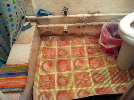 Аккуратный, совмещенный с душем санузел, есть большой таз для купания ребенка.