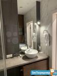 Стильная ванная комната. Имеется отдельная кладовая комната со встроенной вместительной системой хранения и размещенной в ней стиральной машиной.