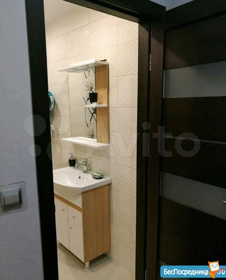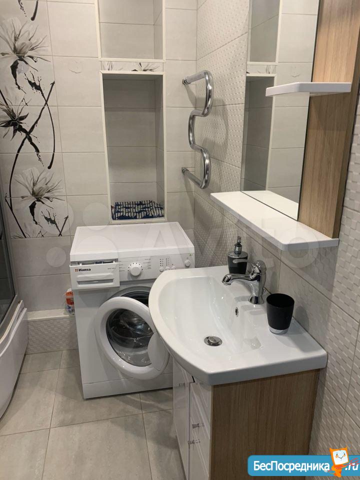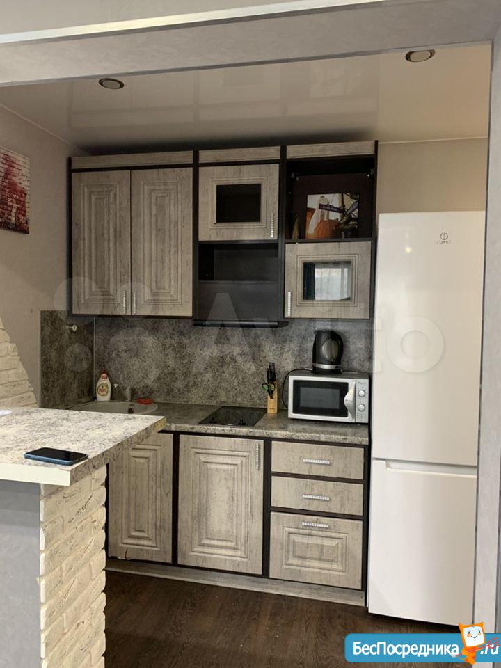 В квартире имеется все необходимое для проживания: плазма, стиральная-машинка автомат, холодильник, встроенная кухня, шкаф-купе с большими зеркалами, диван, два барных высоких стула. Дизайн в современном стиле. Застекленная просторная лоджия.