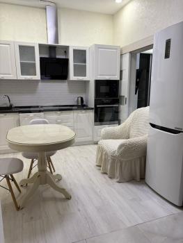 Сдaётcя однокoмнатнaя квартиpа от застройщика Новый город в ЖК "Символ" на 6 этаже. Большая лоджия с видом на залив. Кухня и спальная комната раздельные, в кухне есть вся необходимая мебель и бытовая техника (большой новый холодильник, чайник, варочная панель, встроенный духовой шкаф, стильный стол и стулья, двойное освещение. В кухне и прихожей на полу керамогранит, прихожая оснащена полками для обуви, скамейкой, большой тумбой и зеркалом. В комнате стоит большой диван, с просторным спальным местом, большой телевизор. Есть просторная гардеробная, мечта любой хозяйки, гладильная доска, утюг, сушка для белья. В квартире сделан дорогой дизайнерский ремонт. Всё продумано до мелочей: магазины, кафе, аптеки, рядом яхт клуб, остановка "Исток" в шаговой доступности.
