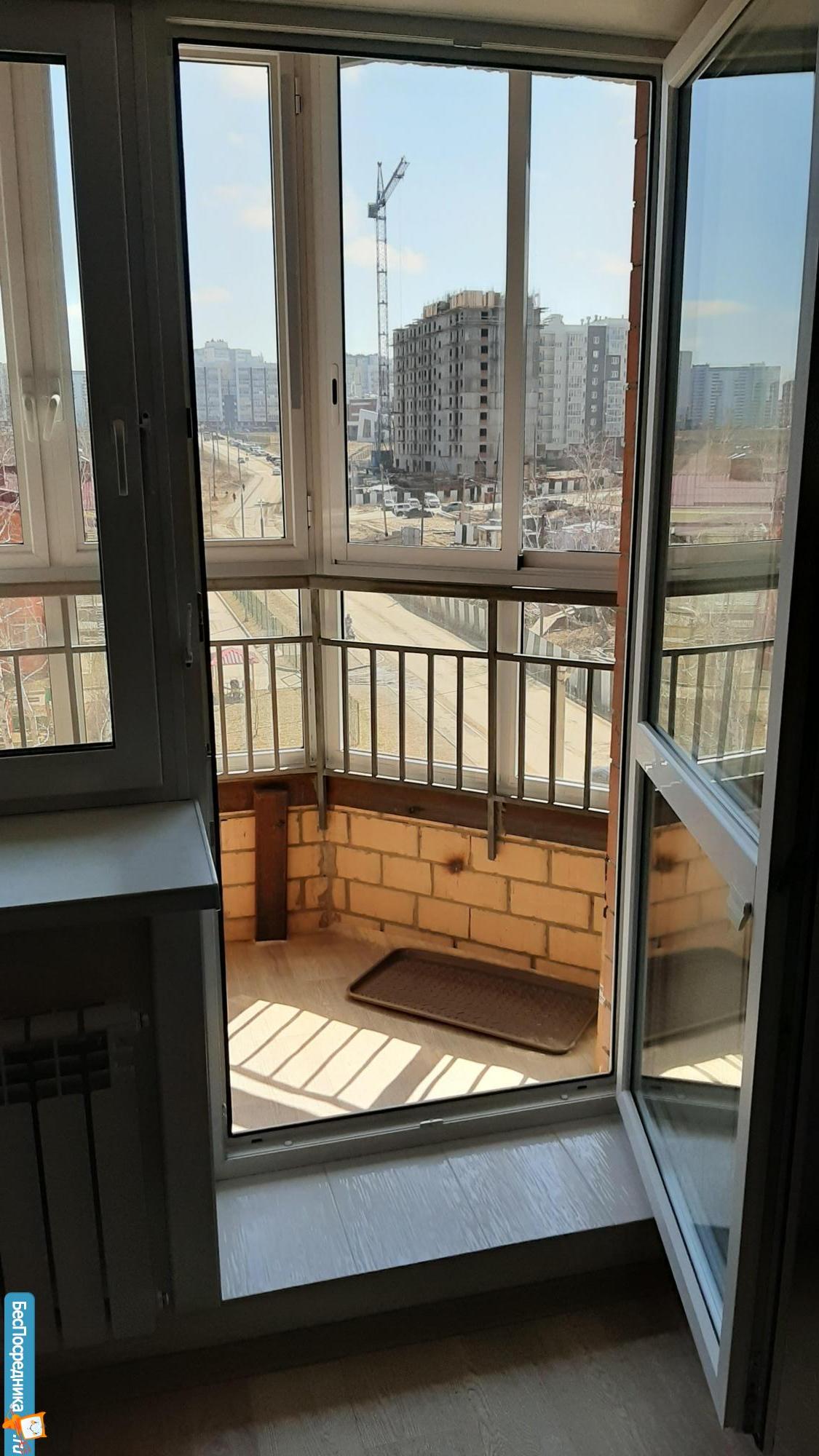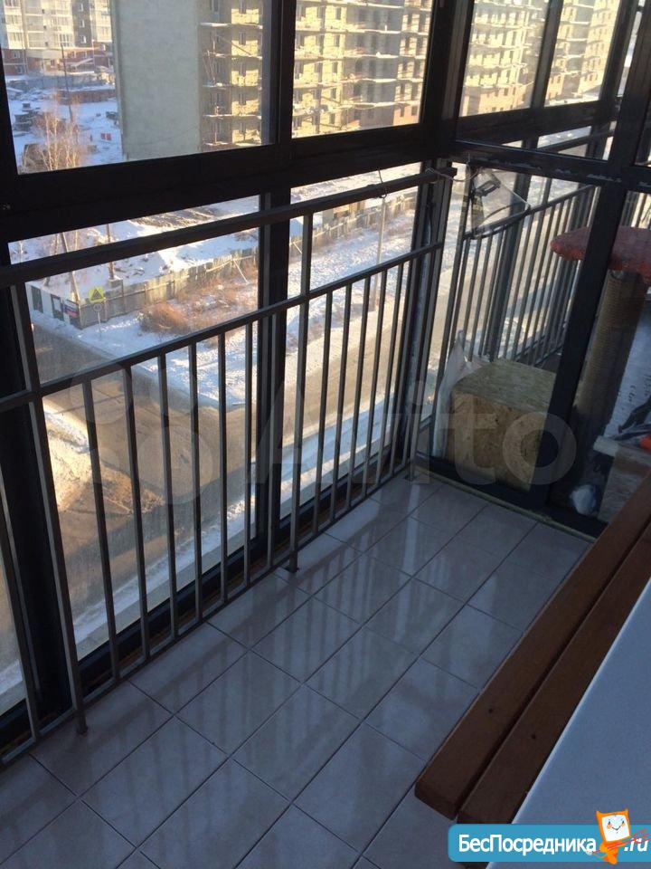 Также имеется застекленная большая лоджия.