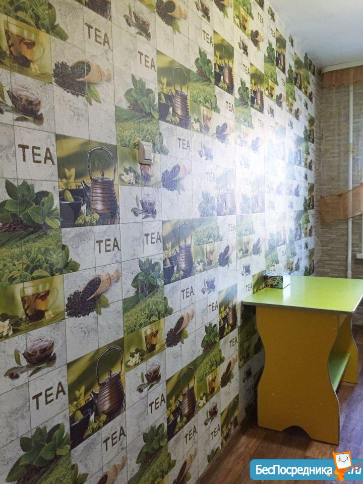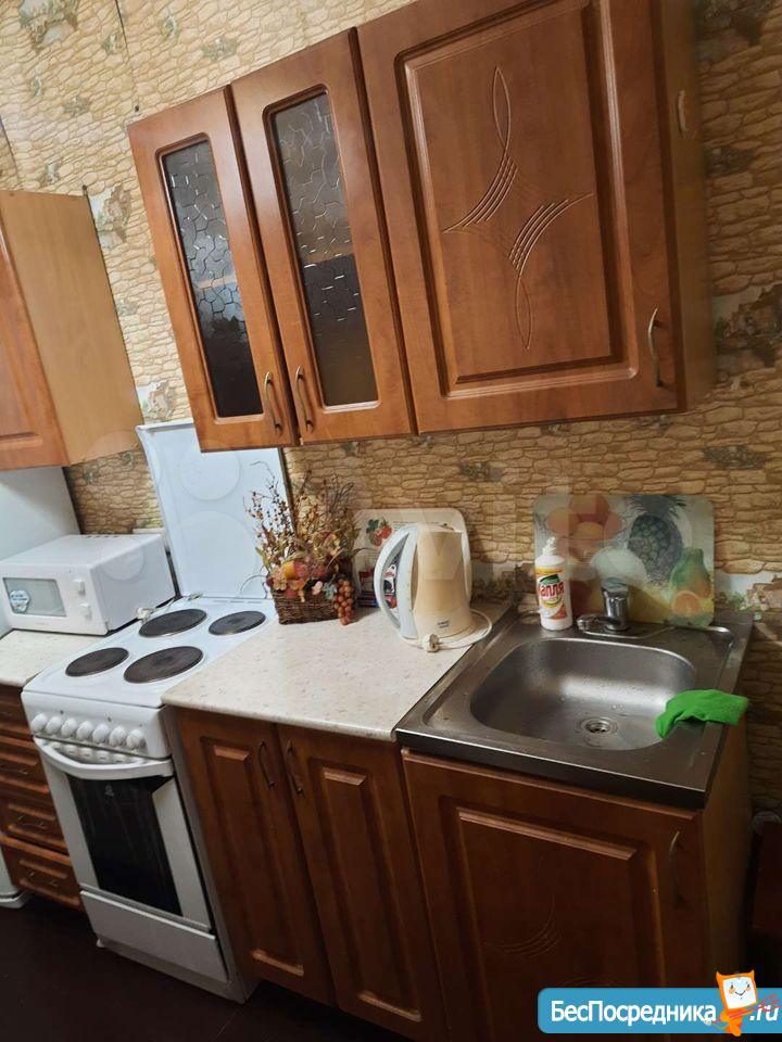 На полу в кухне и коридоре плитка. Кухонный гарнитур, вся необходимая бытовая техника , стиральная машина, холодильник, телевизор, микроволновка, элкетрочайник, 4 конфорочная плита с хорошей духовкой.