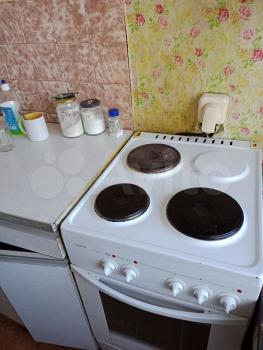 холодильник, плита, стиральная машина, телевизор.