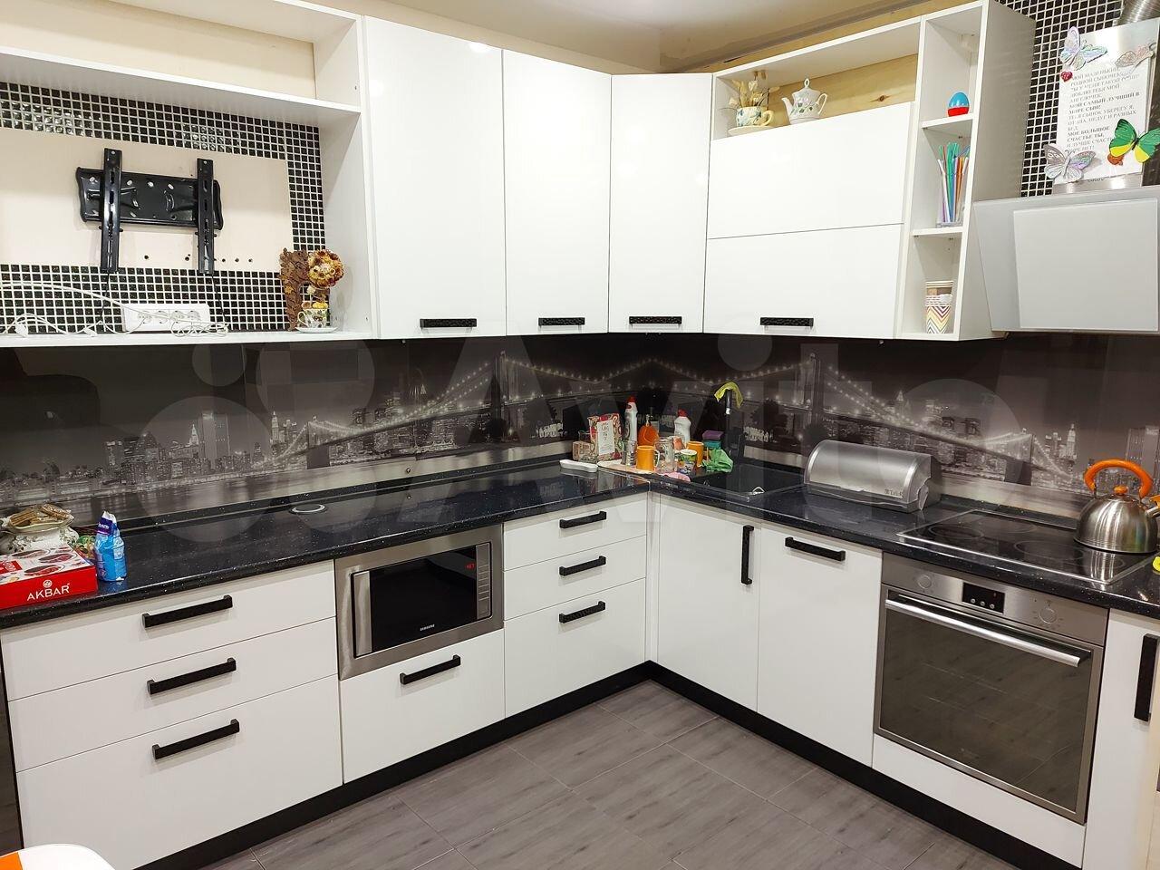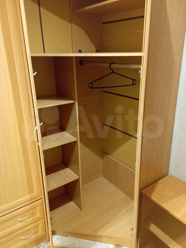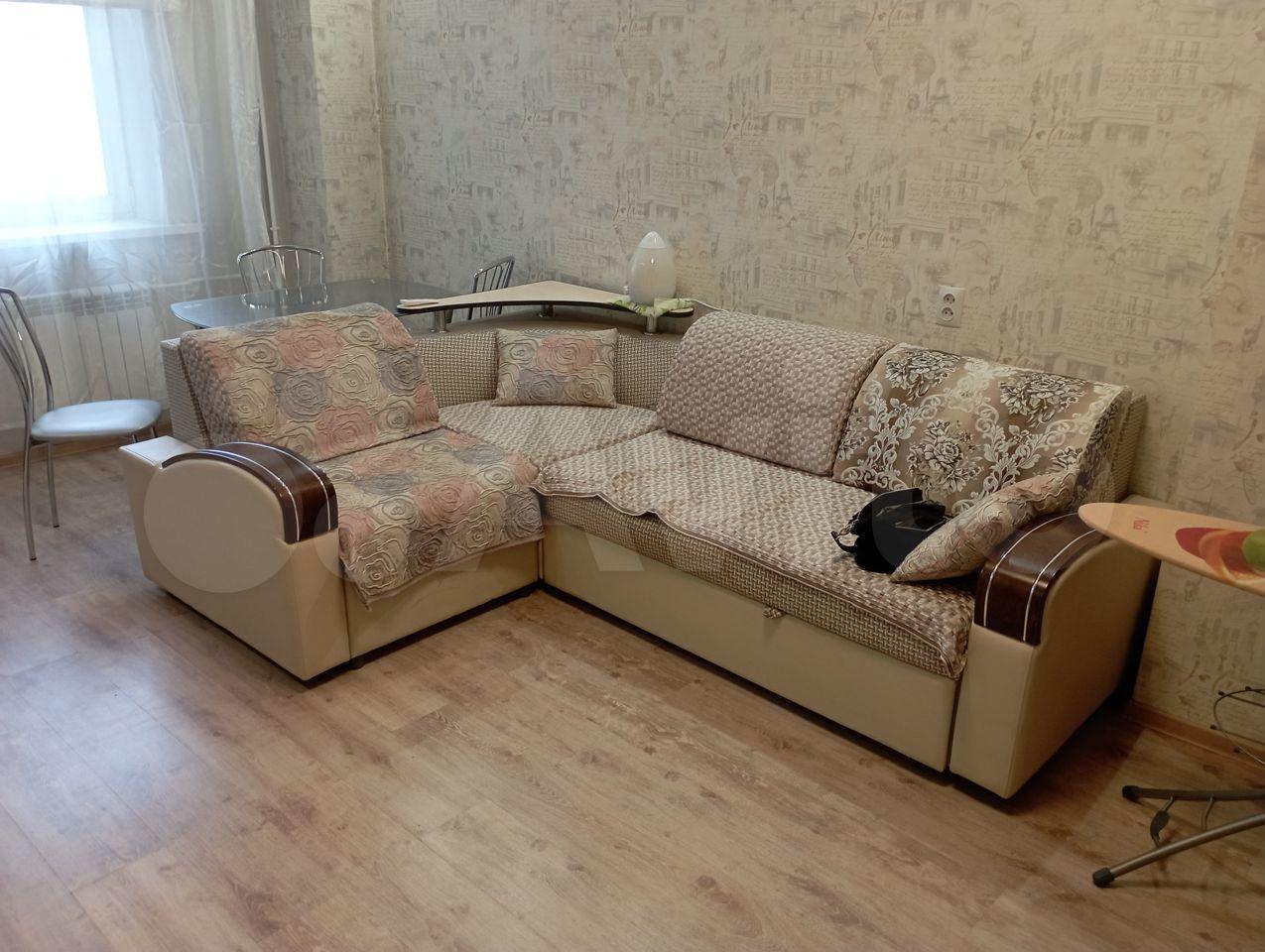 Из мебели: кухонный гарнитур, встроенный просторный шкаф, стол, стулья, гладильная доска, кровать Лазурит, большой диван, шкаф в прихожей.