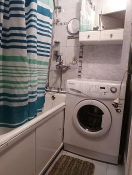раздельный.Электроплита холодильник стиральная машина и вся необходимая мебель и посуда.Все есть в наличии. Цена аренды за месяц: 13000 рублей вместе с коммуналкой.До остановки 10 минут пешком.Рядом магазины.Без залога.