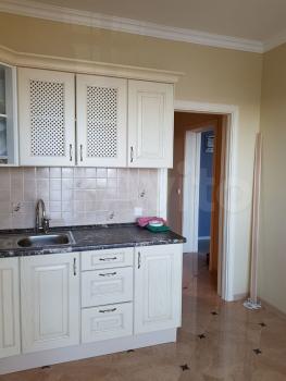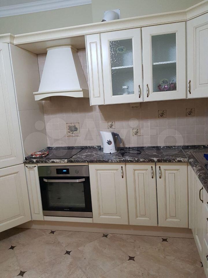 Встроенный кухонный гарнитур, плита стеклокерамическая, духовой шкаф, вытяжка, холодильник, диван, телевизор ЖК.