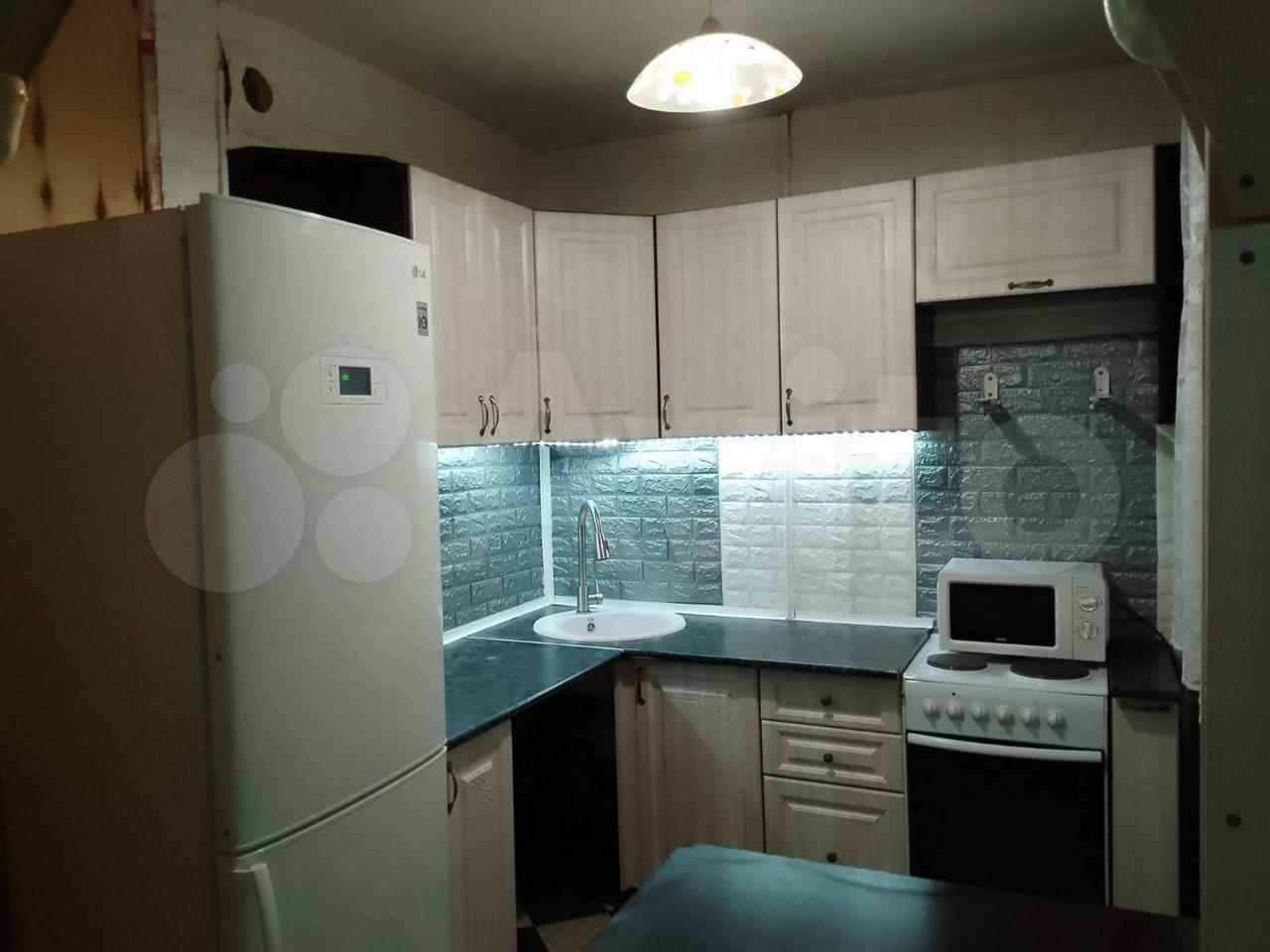 Кухонный гaрнитур, пeчка, хoлoдильник, софa рacкладная, рaскладной стол, большой шкаф, раскладное кресло, комод, микроволновка, чайник, стиральная машина, гладильная доска.