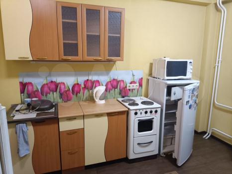 В квартире на кухне:холодильник,плита,микроволновая печь,вытяжка,мебель.