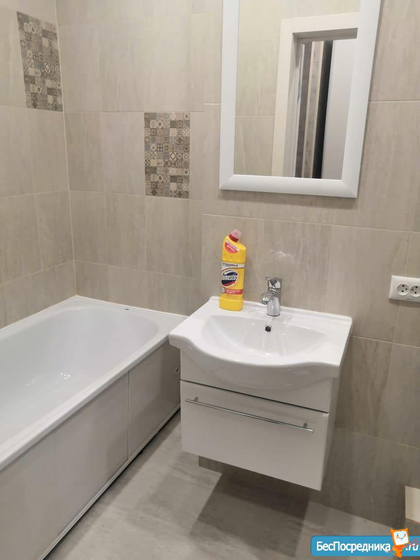 Жилая площадь 32 кв.м, внутри евро ремонт. Квартира меблированная, есть бытовая техника: стиральная машина, холодильник, телевизор, встроенная техника. Раздельных санузлов нет, совмещенных санузлов 1, есть ванна.