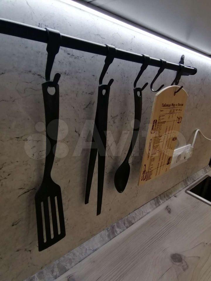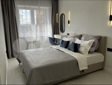 В квартире есть все необходимое: двухспальная кровать, диван, телевизор, плита, духовка, холодильник, микроволновка, встроенный шкаф, напольная вешалка для вещей, прикроватная тумбочка, косметический столик и стильные элементы декора.