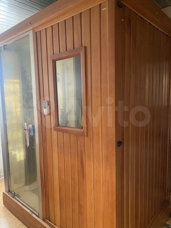 В ванной комнате душевая кабина с парилкой