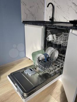 холодильник, плита, стиральная машина, посудомоечная машина, телевизор.