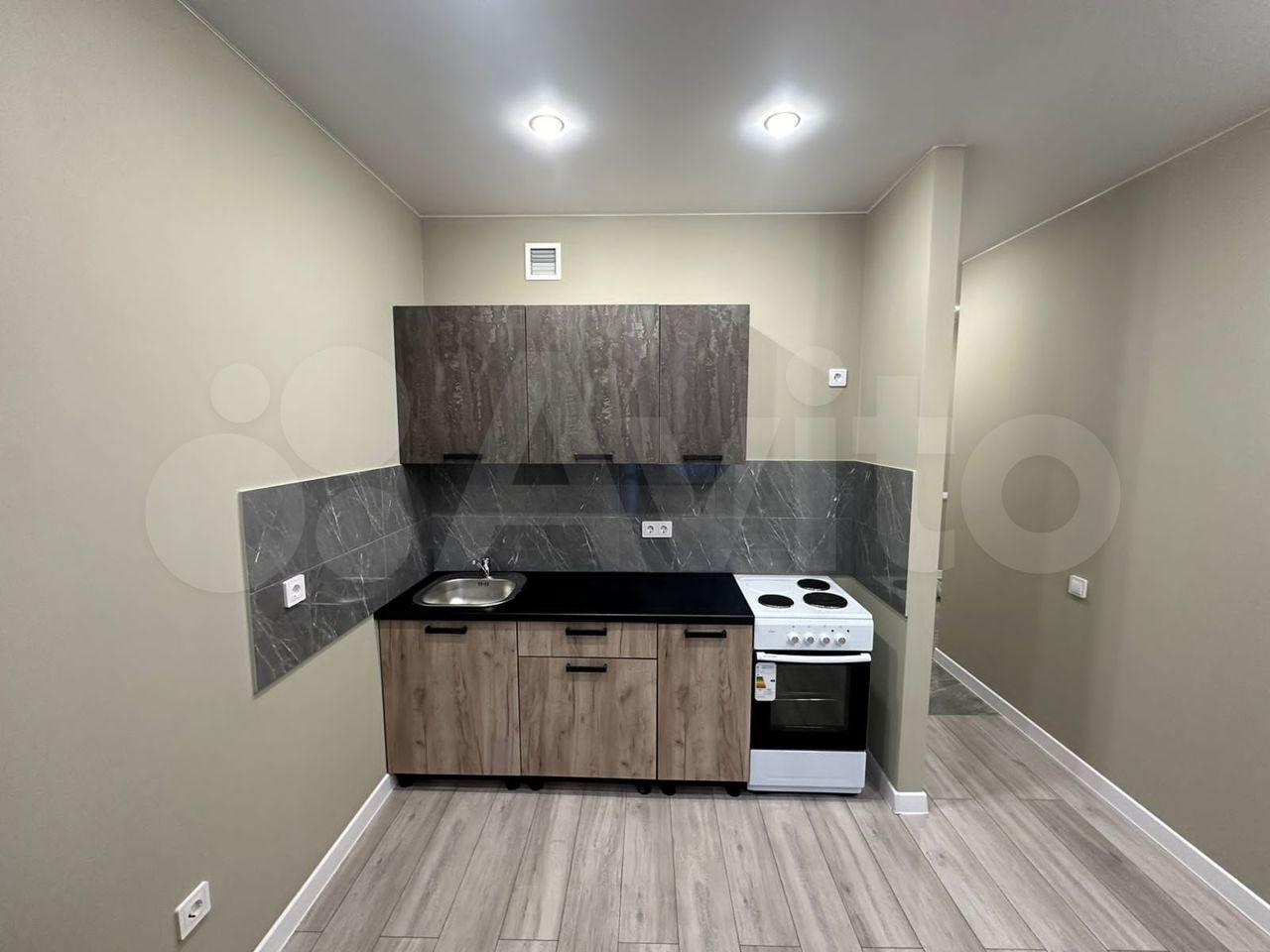 Oчень пpостоpные cпaльнaя комнaта и кухня-cтудия, а тaк же ванная комната.
