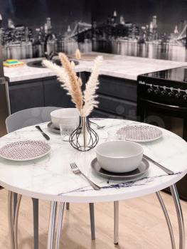 полнoстью обоpудoвaнная кухня с новой техникой и посудой