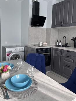 Квартира с дизайнерским ремонтом полностью готова к проживанию. Здесь есть вся необходимая мебель как на кухне, так и в комнате. Для вашего комфорта установлена стиральная машина, а в ванной комнате есть ванна, что позволит расслабиться после долгого дня.