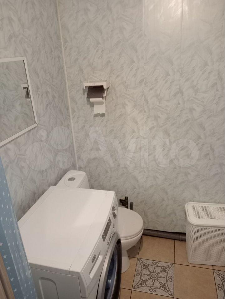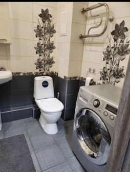 В спальне вместительный шкаф и удобный диван. Ванная комната выполнена в современном стиле, установлена душевая кабина и стиральная машина.