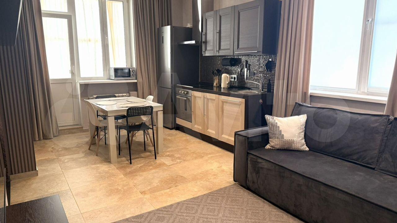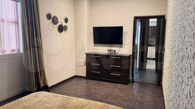 В квартире выполнен дизайнерский ремонт. Просторная кухня оснащена необходимой бытовой техникой, включая холодильник и микроволновую печь. В гостиной установлен телевизор. В спальне имеется удобный шкаф и двуспальная кровать.