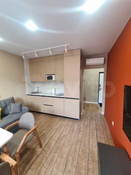 Светлая и теплая 1-квартира с большой комнатой и большой кухней в новом доме в современном районе "Эволюция". Окна выходят во двор, на детскую площадку. Квартира оснащена необходимой мебелью и бытовой техникой. По желанию возможно добавление спальных мест. Аренда 25000 в месяц плюс оплата жку по счетчикам, залог 25000.