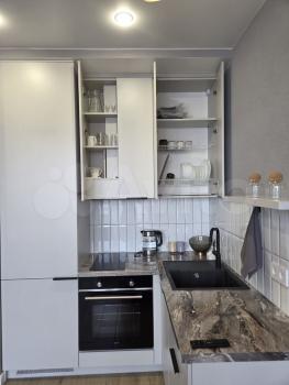 Мебелированная: кухня с обеденным столом и стульями + бытовая техника: холодильник, варочная панель, духовой шкаф, вытяжка, чайник, стиральная машинка; двухъярусная детская кровать 180смх80см, письменный стол, большой шкаф-купэ, двухспальная кровать, раскладной диван-софа, телевизор. Все фото свежие, в квартире всё как на фото.